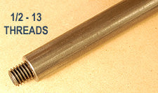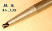 Our standard 3/4" (19.05mm) diameter steel dent rod is tapered at one end and fitted with 3/8-16 threads. The other end is fitted with 1/2-13 threads. The 48" (1.22m) length works great for all saxophones as well as large brass instrument.